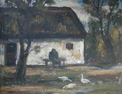 Borús tanya (1985;Olaj-farost, 30x50 cm)